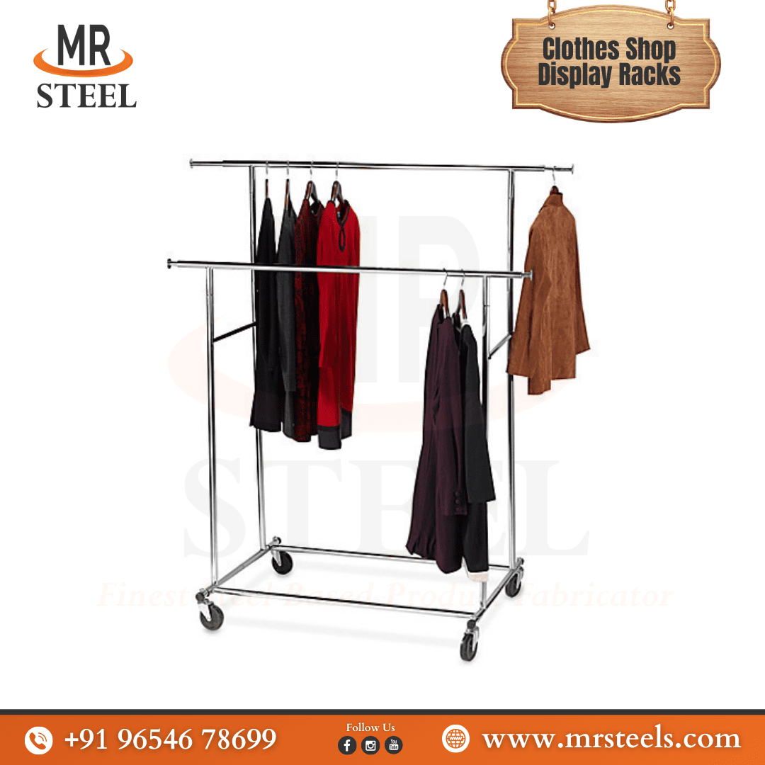 Specifically tailored for the demands of a busy clothes shop, this rack is designed to withstand constant use while maintaining a stylish appearance.