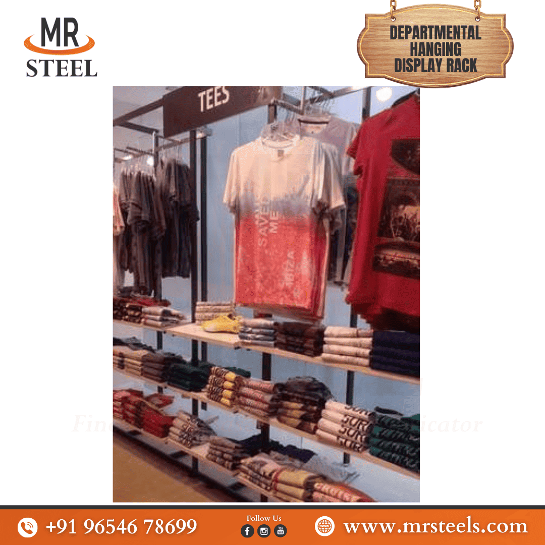 MR Steel's Departmental Hanging Display Rack offers a strong and efficient solution for organizing garments and products.
