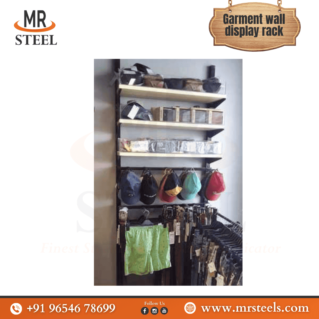 MR Steel's Garment Wall Display Rack is a durable and space-saving solution for displaying garments vertically.