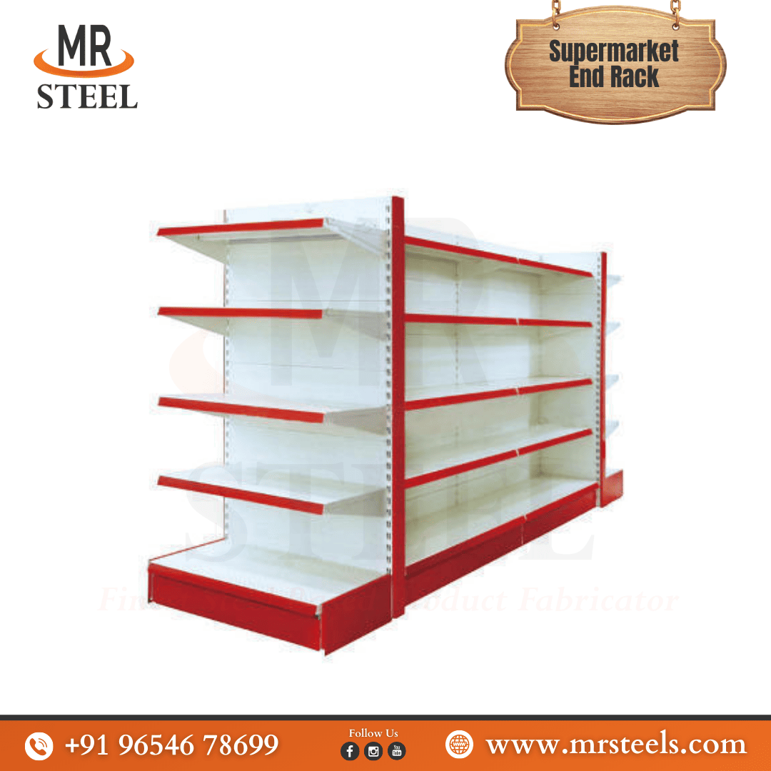 Specialized end-cap rack designed to maximize supermarket aisle-end display spaces